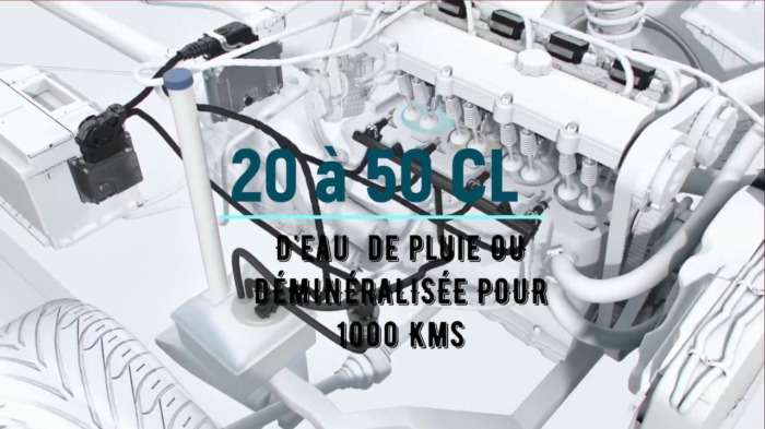 « Le seul inconvénient aujourd’hui c’est de devoir remettre de l’eau tous les 1000 kilomètres. Si on oublie de mettre de l’eau, le système aquatique ne fonctionne plus — mais la voiture marche normalement — jusqu’à ce qu’on en remette. Rien de bien méchant donc… »