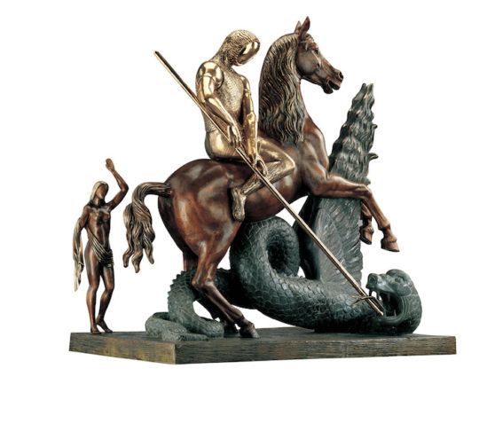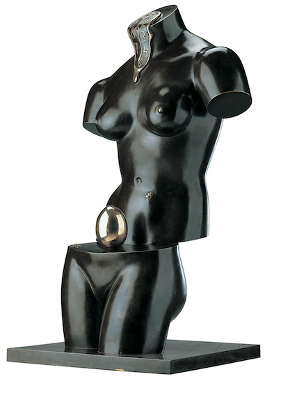 Les grands leitmotivs dans l’œuvre de Dalí, traités selon plusieurs techniques, témoignent de son éclectisme. Ces œuvres résultent notamment de la mise au point par l’artiste de la « méthode paranoïaque-critique » qui fonctionne par associations d’images. Pour le torse féminin de La Vénus spatiale (1977), Dalí emprunte à la statuaire antique et substitue une montre molle à la tête. Les deux fourmis sont là pour rappeler sa phobie des insectes tandis que l’œuf, à la section du corps, signifie le renouveau autant que la dualité dur / mou, présente chez le homard et l’escargot, autres motifs de l’univers dalinien. Hybridation des animaux également avec L’Éléphant Spatial (1980), aux oreilles de chauve-souris, une queue de cochon et une barbe de chèvre. Vision onirique d’un éléphant monté sur échasses, déjà présent dans le tableau La Tentation de Saint Antoine (1947), entre fragilité de l’équilibre et démesure. Autre créature hybride, le personnage mythologique du Minotaure (1981) à la tête de taureau-loup et au corps de femme, érigé sur son socle dont les silhouettes qui y sont représentées semblent imiter la pose.