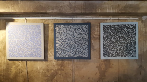 Les contraintes liées à l’espace d’accrochage n’ont en aucun cas étaient un obstacle et Tom Nelson a plutôt travaillé à adapter ses formats au lieu. Ce type d’endroit n’est d’ailleurs pas une découverte pour lui qui a débuté par des expositions dans des bars et restaurants. Sans oublier ses racines artistiques dans l’univers du graffiti, le travail du jeune artiste présente certaines évolutions. Travaillant à ses débuts sur des supports de récupération, la professionnalisation l’a amené à se tourner davantage vers la toile.