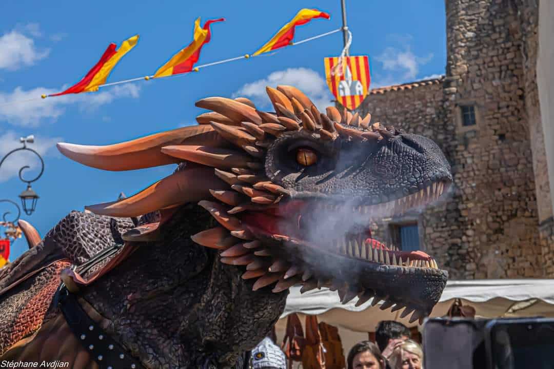 14h15 – 16h15 et 18h30 : déambulation de 30 minutes avec les Wanderers, éternels nomades des mondes perdus avec la rencontre du dragon Daïron, le dernier de son espèce !
