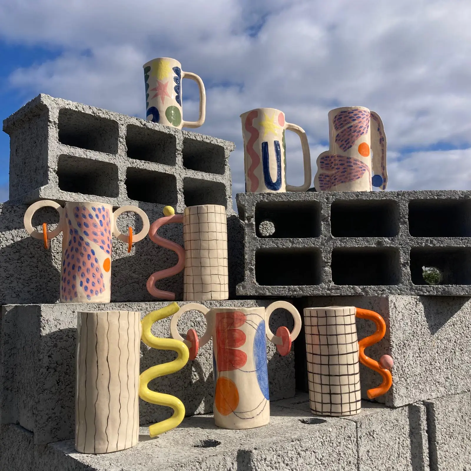 Issue d’une formation aux Beaux-Arts d’Angers, Maria Luz s’est formée à la céramique et propose des objets décoratifs et sculpturaux, parfois utilitaires, réalisés en grès émaillé cuit au gaz. Ses pièces sont habillées de décors floraux inspirés de l’art et l’artisanat du début du XXe siècle. Les formes naïves des pièces utilitaires de Zazie Brosse, de l’atelier EIZAZ, accompagnent quant à elles le quotidien avec couleur et gaieté. « Elle s’inspire tantôt de détails de la vie de tous les jours, tantôt d’artistes qu’elle affectionne comme le groupe Memphis, Miro, Calder. »