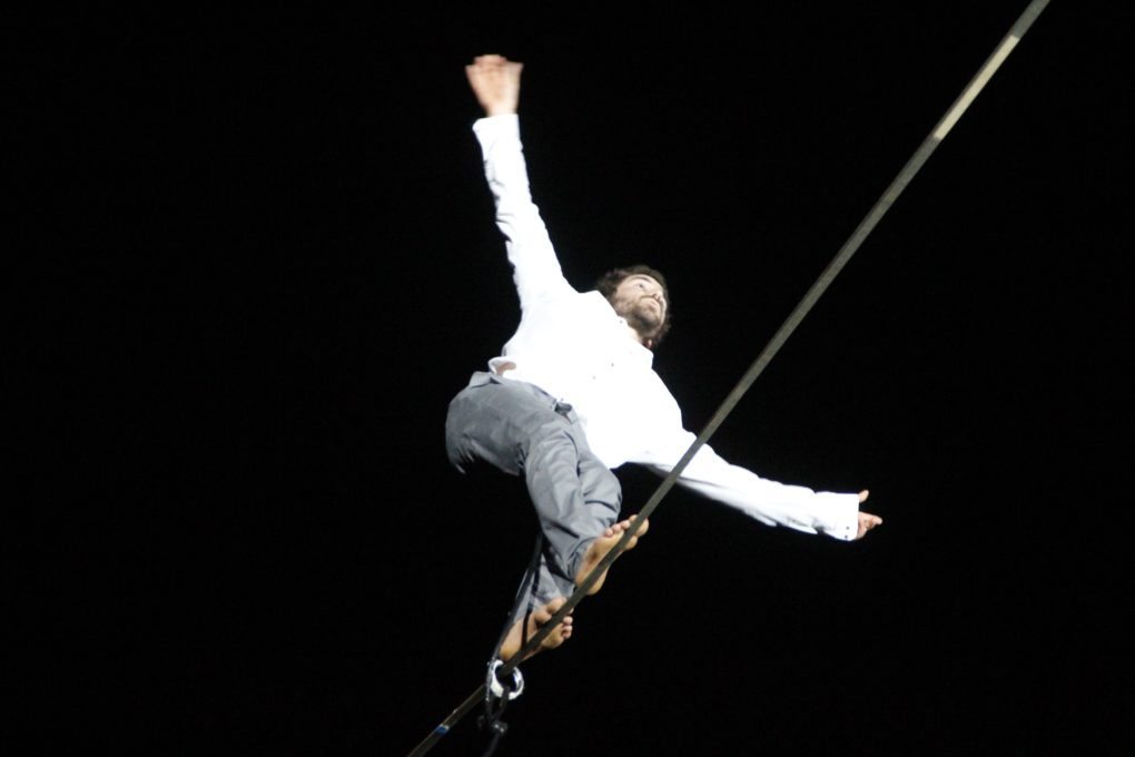 Le 31 décembre 2015 à 23h40, il a accroché son mousqueton entre l’Opéra et l’Hôtel de Ville de Rennes. Puis il s’est élancé afin de traverser la place de la mairie au-dessus d’un foule traversée d’admiration, de frissons et de cris.