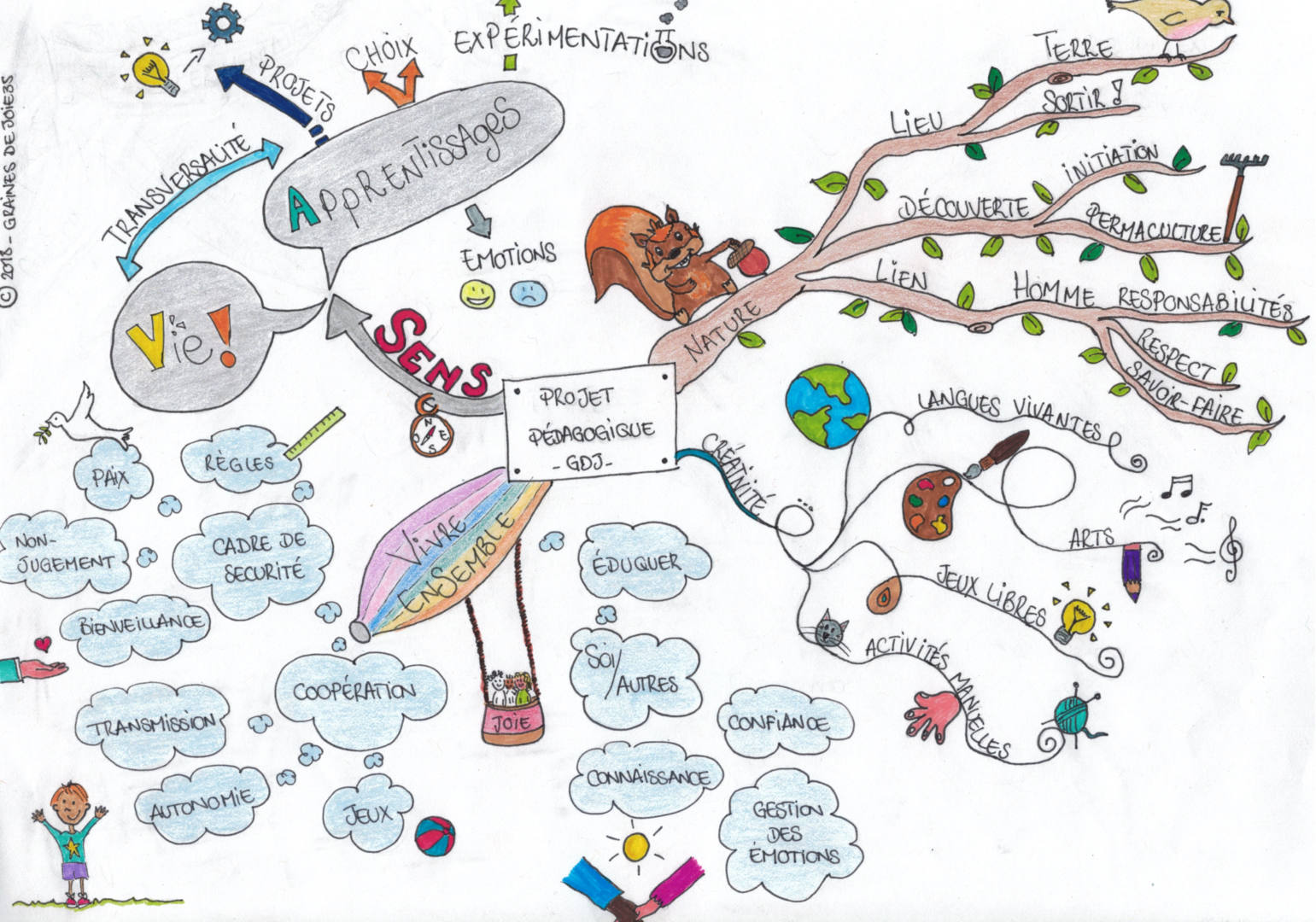 Cela fait maintenant 3 ans que le duo engagé travaille à la création de l’école Graines de joie. Cette école se situera en pleine nature rennaise pour permettre aux enfants de se développer dans un espace apaisant. La cour de récréation deviendra un terrain de jeu infini et changeant au gré des saisons. L’école sera divisée en 2 classes de multi-niveaux : un jardin d’enfants de 20 enfants âgés de 3 à 6 ans et une classe de primaire de 20 enfants âgés de 6 à 11 ans. « Nous avons rencontré les élus de la ville de Rennes au mois de février. Ils nous ont alors accordé leur soutien dans la mise en place de l’école. À l’heure actuelle nous sommes à la recherche d’un local pour lequel nous avons émis des souhaits avec des intentions précises. Il faut qu’il y ait de la nature et surtout pas de bitume, sans pour autant que nous soyons isolés du reste de la ville. C’est vraiment important que le projet fasse sens et reste cohérent avec nos principes. »
