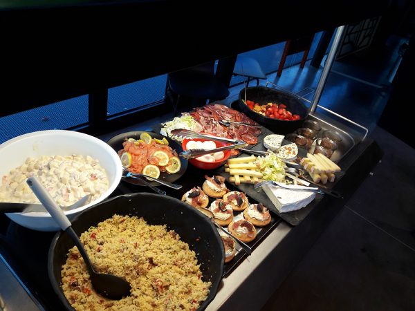 Deux buffets sont à disposition dans ce havre de paix du sport. Pour la team salé, les classiques du brunch (pain, oeufs brouillés, saucisses, bacon, charcuteries, fromages…) seront accompagnés de crudités, wraps, gratins et verrines. Pour les amoureux des aliments sweety, des fruits frais, muesli, crumble, gâteaux maisons, pancakes, viennoiseries et même des bonbons feront briller vos yeux.
