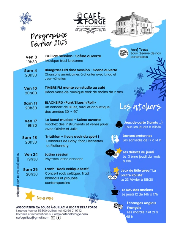 Chaque mois, le Café de la Forge établit un planning et donne rendez-vous au public. Découvrez ici celui de février 2023.