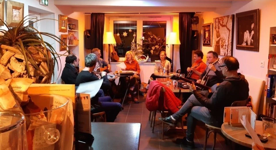 En basse saison, le café reprend son rythme de croisière. Les gens du coin sont ravis de se retrouver autour d’un petit café ou d’un chocolat chaud. On rapproche les tables et les chaises et les animations perdurent à l’intérieur du café. Les participants se retrouvent autour d’un jeu de cartes, d’une séance lecture, d’un guitariste, d’un violoniste, d’un conteur ou d’une exposition.