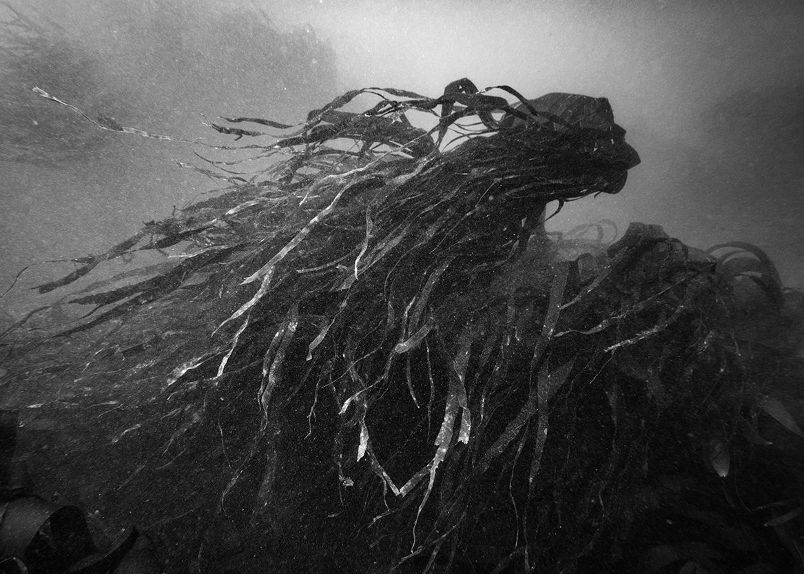 Le vocabulaire se fait lui aussi poétique : forêts d’algues, tapis d’anémones, colonies d’étoiles de mer, étendues de laminaires, gorgones… Il nous laisserait volontiers dans un état méditatif, si ne se rappelait pas à nous la dimension politique de ce travail, et, en trame, l’urgence à décrire ces paysages en mutation constante sous la pression inquiétante des activités humaines. Les effets de celles-ci, conjugués à ceux du changement climatique sont palpables au fond des abysses comme sur le littoral − le glissement des écosystèmes est six fois plus rapide dans l’océan que sur la terre.