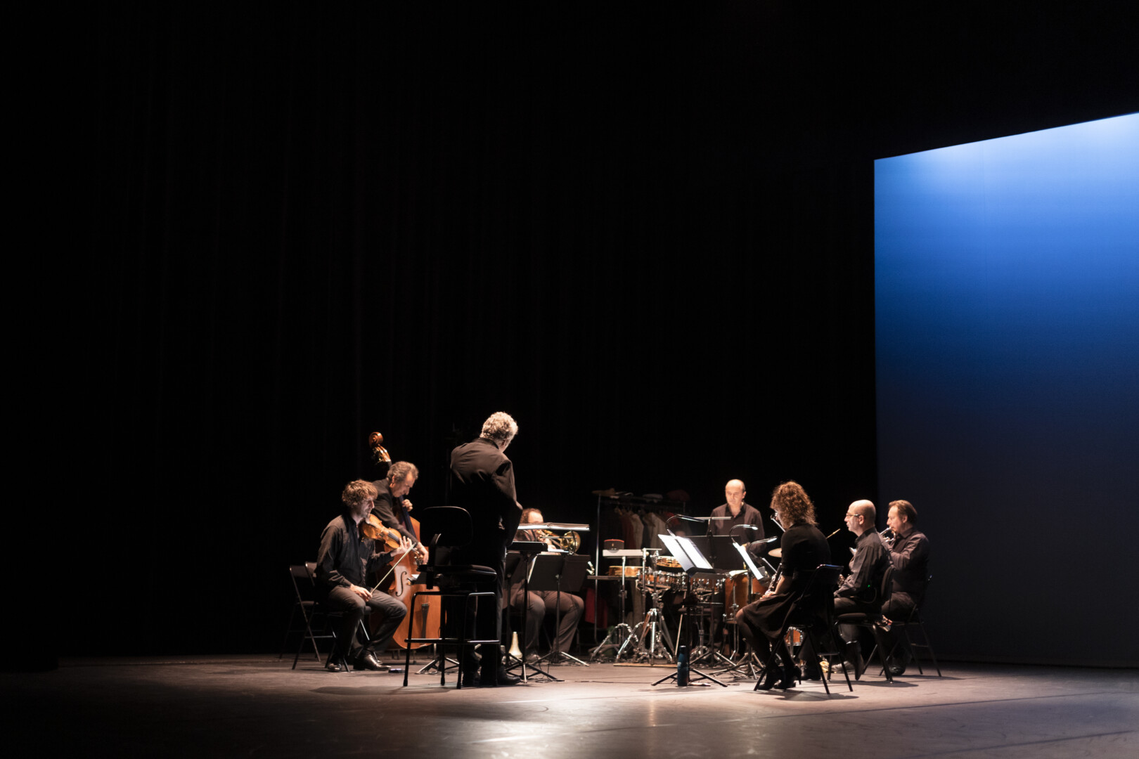 Le meilleur nous fut pourtant donné par l’orchestre National de Bretagne. En assez petit comité, puisque seuls sept musiciens étaient présents sur scène. Le choix fut judicieux, la clarinette de Sonia Borhani fut à la fois magique et énergique. Le groupe des vents formé par notre bassoniste marathonien, Marc Mouginot, Fabien Bollich à la trompette, et enfin Stéphane Guiheux au trombone, fut à la fois précis et éclatant, on ne peut mieux servir la musique de Stravinsky. Huggo le Hénan, très sollicité aux percussions, nous fit ressentir avec habileté la progressive montée en puissance de l’œuvre pour finir dans un paroxysme sonore mais dominé. Ce spectacle ne manque pas d’atouts et demande certainement à mûrir. Laissons-lui un peu de temps. S’il laisse une impression mitigée c’est aussi peut-être aussi que nous sortons d’une période difficile qui nous a bousculés en profondeur et nous incite à ne pas si facilement accorder notre confiance. Alors « wait and see ».