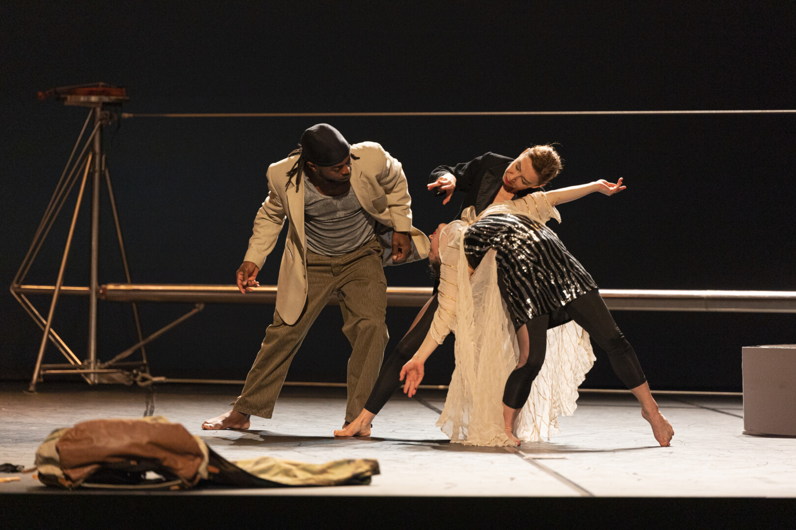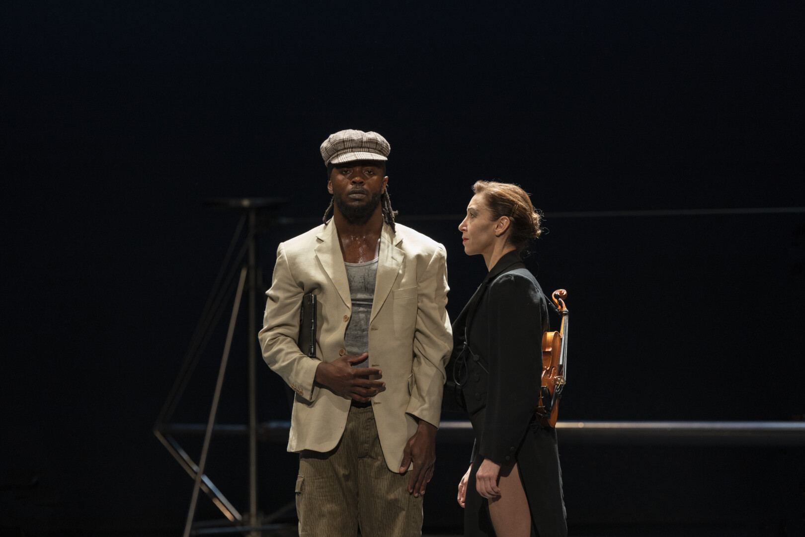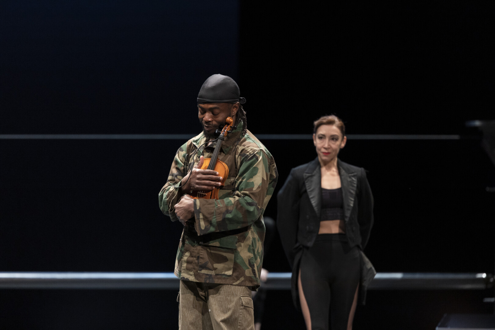 L’arrivée du chef, Grant Llewellyn viendra nous remettre à flot et entamera l’œuvre à proprement dit. Jean-Philippe Lafont, tient vocalement le rôle de narrateur, de diable et de soldat. Sa voix porte bien, sa diction est soignée et claire, il est sûr de son fait et n’a pas tort. Dans le rôle du diable, Stéfany Ganachaud fait son travail, il n’y a rien à redire. Le soldat, lui, est interprété par le danseur de hip-hop Noah Mgebelé Timothée. Si dans le domaine de la danse il réussit même parfois à être éblouissant, il a encore quelques efforts à faire en ce qui concerne le théâtre. Lorsqu’il parle on ne l’entend pas assez, pis encore lorsqu’il le fait en tournant le dos au public. Pourtant il arrive, par une forme de naïveté et d’évidente envie de bien faire à être touchant et on lui pardonne volontiers ces petites imperfections.