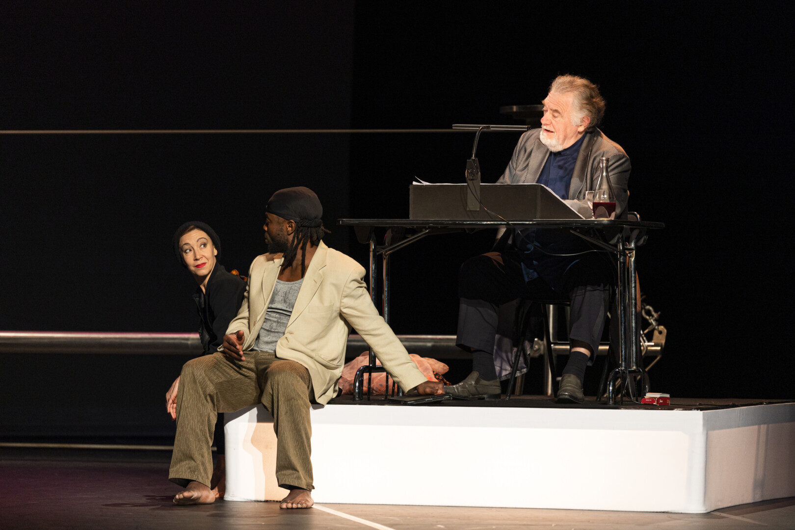 Si ces codes ont été respectés, cette mise en espace peine pourtant à convaincre. Tout élément pris à part est plutôt satisfaisant, mais on a quelques difficultés à ressentir de façon prégnante une cohésion de l’ensemble. Ce malaise commence avec un long moment en forme de prologue au cours duquel musiciens et intervenants circulent sur scène, parlent tout fort de recettes de cuisine, des danseurs s’échauffent, pendant que le narrateur pousse des gloussements un peu ridicules et cabotine un brin, heureux qu’il est de sa belle voix grave. C’est trop long et rapidement agaçant.