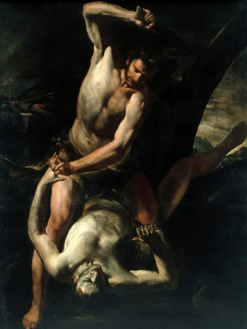 Un coup de vent rabattit la fumée épaisse sur Kahin qui toussa furieusement. « Élohim n’apprécie pas ton sacrifice, mon frère ! » dit Ebel en riant. Kahin en fut irrité et son visage s’assombrit ; il parla à Ebel qui ne lui répondit pas… il se jeta sur lui et le tua, d’un coup de pierre à la gorge.