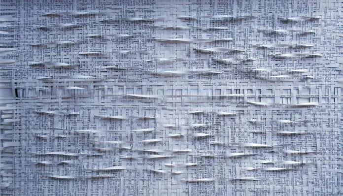 Le papier est le plus naturel possible, seul un vernis sec anti-UV recouvre les pièces pour les préserver de l’action du soleil. Comme Ilann Vogt l’explique, tissé puis mis sous verre, le papier devient plus solide et plus résistant aux aléas du temps. Peut-être les tissages d’Ilann Vogt survivront-ils aux écrits desquels ils sont issus ?