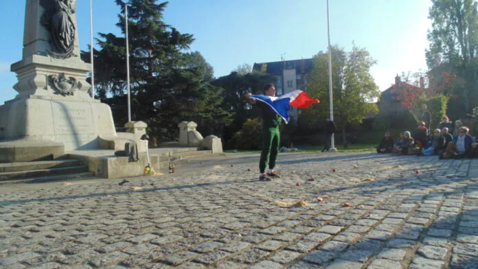 Samedi 29 octobre 2016 à Rennes, toutes les conditions étaient réunies pour faire de cette première représentation rennaise de Jean, solo pour un monument aux morts une paradoxale réussite. Nul mine grise, nul crachin automnal, nulle componction préméditée au pied du mémorial du square de la Motte. Une attente sereine et curieuse de la part du public attiré en ce lieu par le spectacle organisé par Les Tombées de la Nuit dans le cadre des dimanches à Rennes. Mais voilà, novembre n’est pas encore là, nous sommes un samedi. Et, en lieu et place d’un traditionnel shopping (qu’il soit culturel ou matériel), voire d’un café en terrasse afin de profiter de notre été indien, nous voici regroupés autour d’un monument habituellement négligé si ce n’est méprisé pour ce qu’il représente de conformisme passéiste.