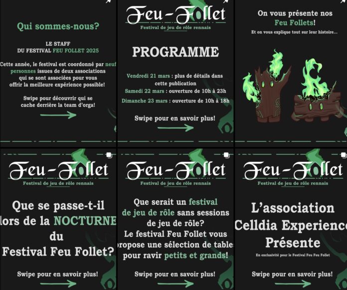 Le Festival de Jeu de Rôle Rennais Feu Follet revient les 22 et 23 mars au Jeu de Paume, pour un week-end placé sous le signe de l’imaginaire, de la créativité et de l’aventure collective.