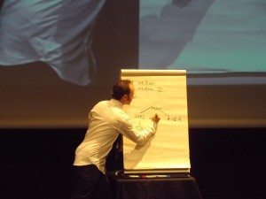 Au Festiv’all Johann Charvel donne une conférence gesticulée irradiante