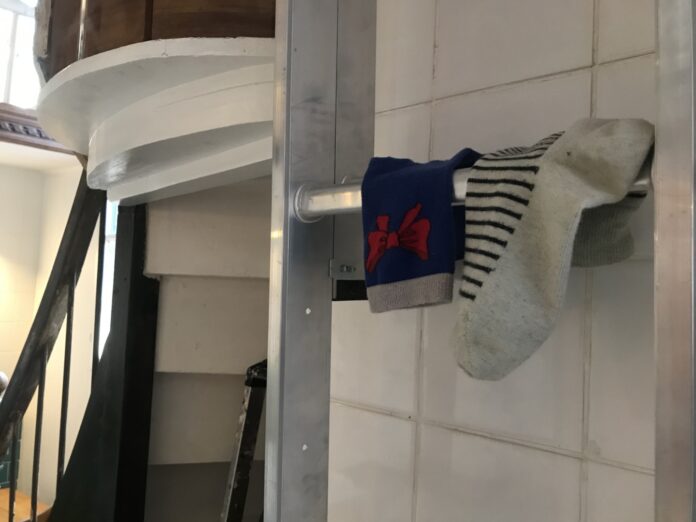 La 2ème Chaussette, voilà un nom qui interloque. Céline Hervé explique qu’il fait référence à son ancien café-laverie où elle retrouvait souvent des chaussettes perdues. Mais ce nom peut tout aussi bien faire référence à la manière dont elle a conçu le lieu. Son bar est majoritairement, si ce n’est entièrement, constitué et décoré à partir d’éléments récupérés. Multitâche, elle a suivi une formation en peinture et déco qui lui a permis de rénover son bar quasiment seule, avec l’aide de son frère. La 2ème Chaussette fait donc écho à une autre de ses passions : la seconde main. Elle chine dans les brocantes, les dépôts vente ou même auprès de particuliers dans la rue, « là j’ai un bout d’église, et ça c’est un lampadaire que j’ai trouvé au bord de la route, il y en avait deux mais ma mère m’a dit que je pouvais n’en prendre qu’un », plaisante Céline.