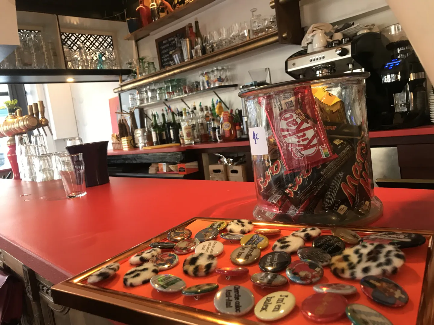 La patronne de La 2ème Chaussette ne désire pas coller d’identité à son bar. « En face, il y a un bar spécialisé dans les jeux vidéo, moi je ne veux pas qu’on me colle d’étiquette. Par exemple, mes clients savent que j’ai des origines espagnoles et que j’ai récemment organisé une soirée salsa au bar, mais je ne veux pas que ça définisse l’identité de mon bar ». Elle souhaite créer un espace où les gens peuvent se retrouver et se poser. Elle met d’ailleurs des jeux à disposition, comme un Catan ou un Burger Quizz… une partie ça vous dit ? Comme ce fut le cas avec la soirée salsa, Céline prévoit d’organiser de temps en temps des événements similaires. Prévu à cet effet, elle a converti le lampadaire trouvé en une vraie boule disco, « je l’ai démonté et j’ai collé des bouts de miroirs dedans pour que la lumière se réfléchisse mieux ».