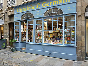 Rue Nationale, en plein centre ville de Rennes, la librairie Saint-Germain résiste aux franchises et autres grandes chaines de magasins depuis 1850. Tenue par Hélène Lemestre, la librairie accueille un public de fidèles (on peut le dire) et de curieux.