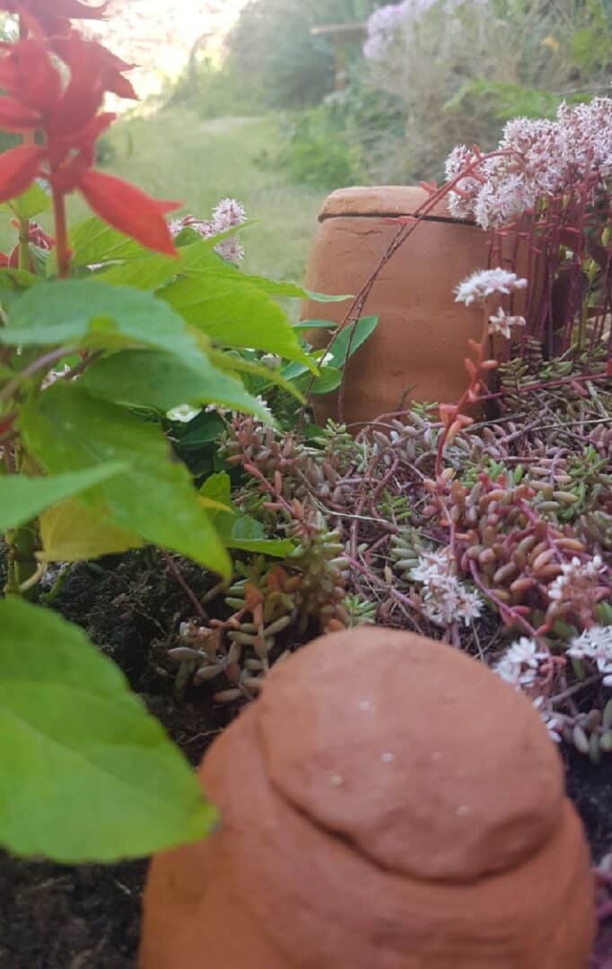 Dans la continuité de son rapport aux techniques « domestiques », en ce qu’elles se pratiquent dans l’intimité du domicile, Gwenn Mérel a cultivé des plantes pendant le temps de sa résidence et réalisé des oyas-sculptures qui permettent d’irriguer la terre régulièrement et avec parcimonie. Cet ensemble de plantations et d’oyas est disposé au cœur de la salle d’exposition, sous un puits de lumière naturelle. Ce paysage « macro » dialogue avec le panorama extérieur du lac de Trémelin que l’on aperçoit à travers les vitres.