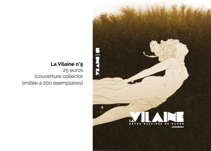 La Vilaine est une revue rennaise dessinée en bande. Des histoires de fiction, des reportages, ayant la capitale bretonne comme port d’attache. D’un récit à l’autre, les personnages se croisent ou se retrouvent parfois, mis en scène par des auteurs pros et amateurs dans une grande diversité de ton ou de style. Après un premier numéro réussi en 2019, vendu à plus de 2000 exemplaires, la bande de dessinateurs se renouvelle depuis jusqu’au 5e numéro à paraître fin septembre 2023. Et la Vilaine ne lésine pas pou ses cinq ans avec deux couvertures, dont une à tirage limité, magnifiquement illustrées par Claire Malary.