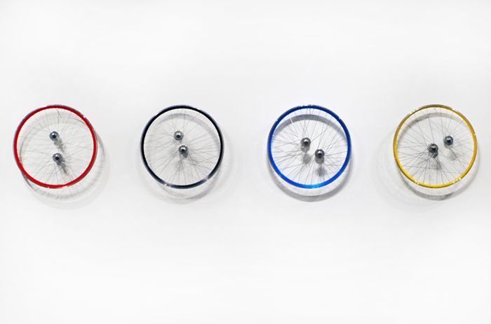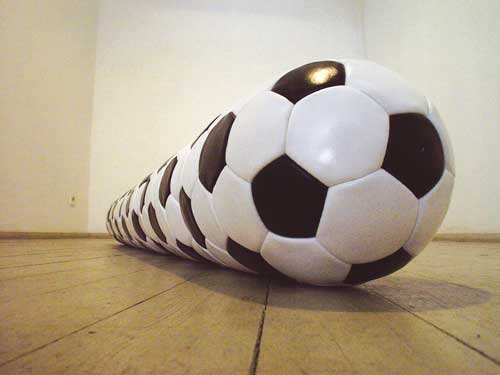 À l’espace culturel Le Volume de Vern-sur-Seiche, le sport s’expose jusqu’au 1er juin 2017. Ballons de foot et de basketball, table de ping-pong, roues de vélo : les œuvres exposées semblent tout droit venues du complexe sportif voisin, avec pour différence, et non des moindres, d’être passées entre les mains de Laurent Perbos, artiste plasticien, avec les métamorphoses que cela comporte.