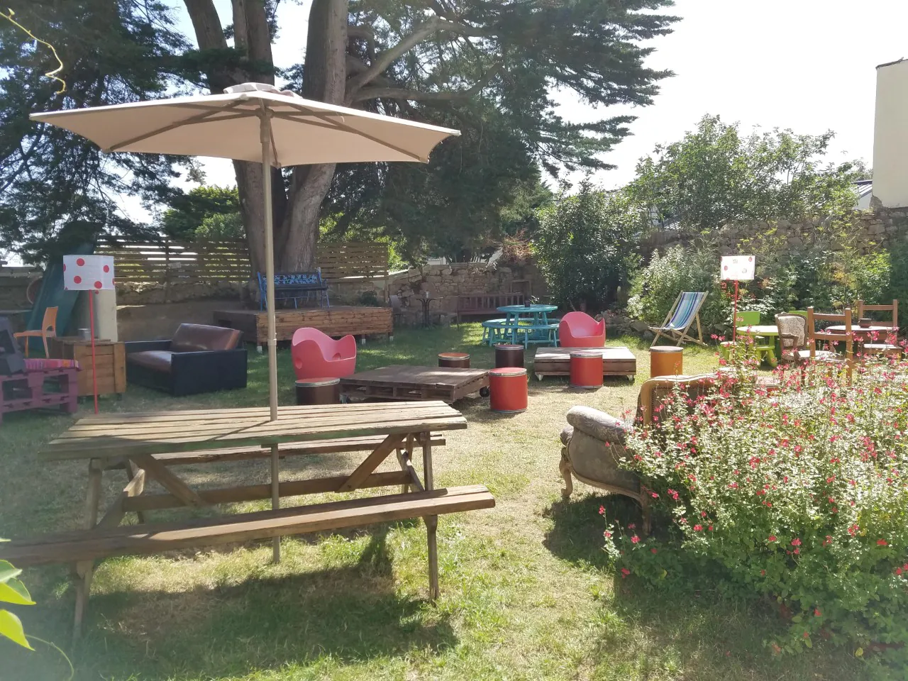 Dominique : On a fait un peu les choses à l’envers. Christophe et moi on cherchait une maison à Locmiquélic. On ne cherchait pas du tout un bar, on cherchait pas à monter une activité. On voulait une grande maison parce qu’on avait en tête que Rol, mon père, allait arrêter son activité d’artiste. On se disait : « Qu’est qu’on va faire des sculptures ? Faudrait avoir de la place… » Et puis on a l’habitude depuis toujours d’accueillir beaucoup de monde à la maison. Moi je voulais un coin atelier pour peindre, Christophe pour faire de la musique… Et on a eu un coup de cœur pour le lieu. On s’est regardés et on s’est dit : « Là, y a quelque chose à faire ». Tout le week-end ça a fusé ! On avait même pas fait une proposition d’achat qu’on était déjà en train d’imaginer tout ce qu’on pouvait faire ici.