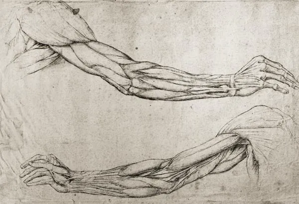 Le travail d’anatomiste de Léonard, fort méconnu à son époque, fit l’admiration de quelques-uns de ses contemporains. « Dans les écoles d’anatomie des médecins, il disséquait des cadavres de criminels, indifférents aux aspects inhumains et répugnants de cette étude, soucieux seulement d’apprendre comment il pourrait représenter de la manière la plus adéquate dans sa peinture les différents muscles et les articulations, leur flexion et leur extension. Il dessina sur des planches, avec un soin admirable, les formes de tous ces éléments jusqu’aux moindres petites veines et l’intérieur des os afin de répandre l’œuvre de tant d’années, grâce à l’estampe, en d’innombrables exemplaires, pour le bénéfice de l’art. » (Paolo Giovio, Vie de Léonard de Vinci, vers 1527).