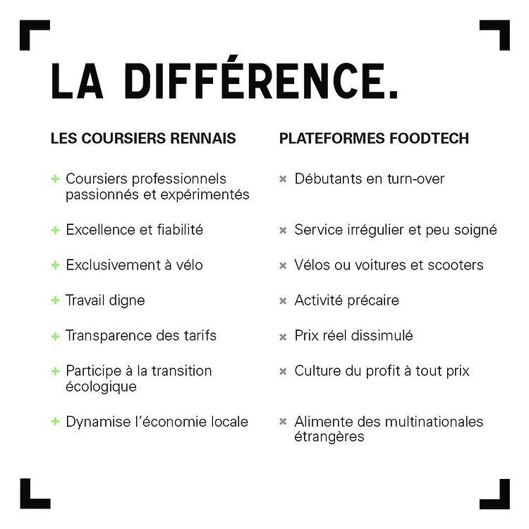 Les Coursiers rennais sont des professionnels expérimentés, un point qu’ils mettent en opposition avec les débutants des grandes plateformes. « On propose un service haut de gamme par rapport aux grosses plateformes. Les livreurs sont indépendants mais signent une charte, on a une relation de confiance. On a tous plusieurs années d’expériences. Pour chacun, la livraison a été à un moment la source de revenus principale ».