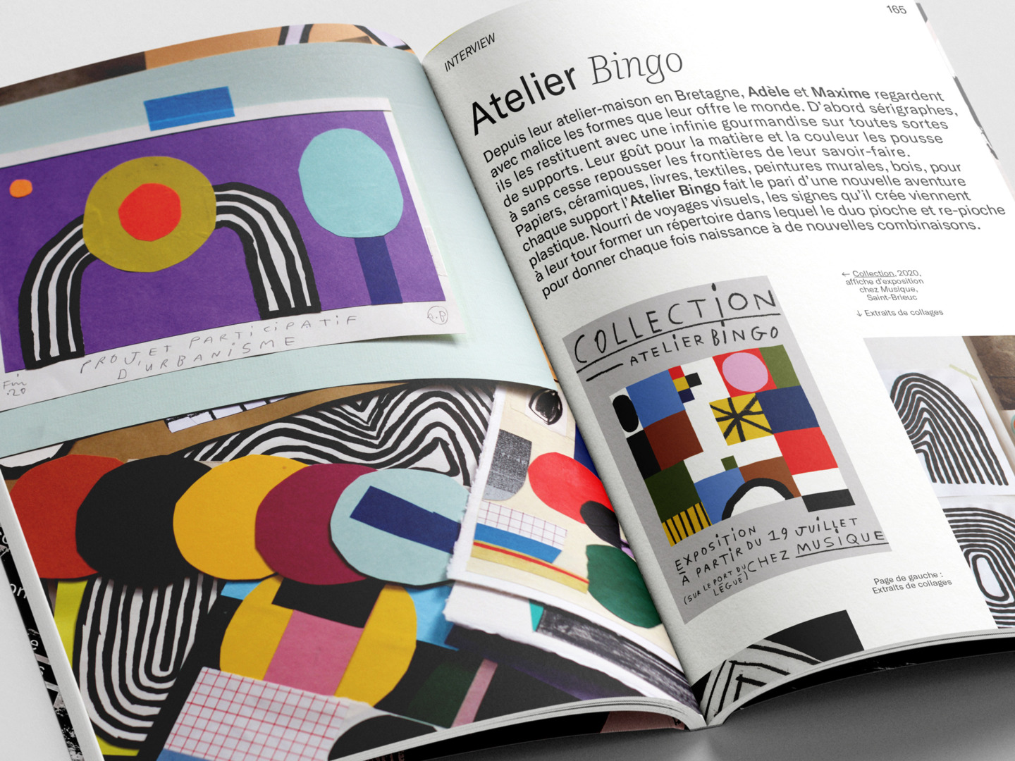 Après un avant-propos de Maud de l’atelier L’Imprimerie et un texte fictif de Julien de l’atelier du Bourg, la place est laissée aux artistes invités. Aux côtés de la brève présentation de chaque collectif du Marché Noir, identifiable par une différence dans le format des pages, se trouvent les interviews des artistes et collectifs invités. Au-delà de la description de l’atelier et des influences, des entretiens personnalisés, propres à chaque pratique, naissent de leurs échanges. « Les artistes ont sélectionné les images présentes dans le livre », souligne Anna. « On leur a demandé de nous envoyer des visuels de leurs productions et un petit texte en amont pour qu’on puisse préparer l’entretien et savoir vers où ils voulaient qu’on aille. »