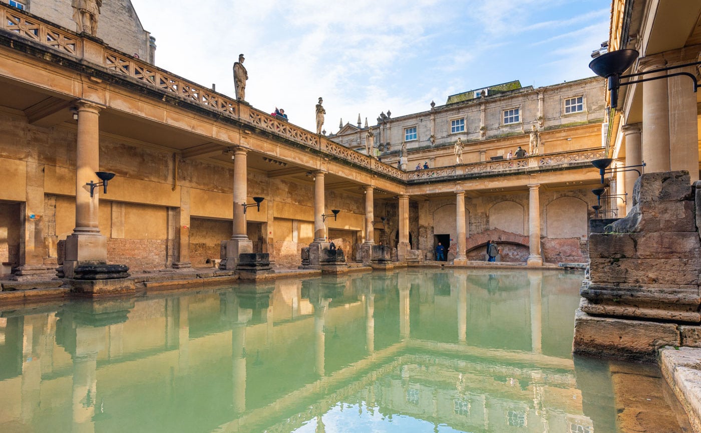 Bath : la ville se situe en campagne vallonnée au sud-ouest du pays, à environ 185 km de Londres. La ville est réputée pour ses sources chaudes et son architecture géorgienne datant du XVIIIe siècle. La pierre de Bath est caractéristique avec sa couleur miel.