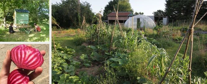 L’éco ferme d’Adélaïde est un lieu de permaculture et d’arboriculture au sein du Trégor. Tout y est fait à la main : la plantation, la récolte, le séchage, l’ensachage. Le potager sur sol vivant est cultivé en agriculture biologique et tend à suivre les principes de la permaculture. Sur cet espace sont cultivées toutes sortes de variétés de légumes. Une serre et un poulailler occupé par six poules ont été construits.