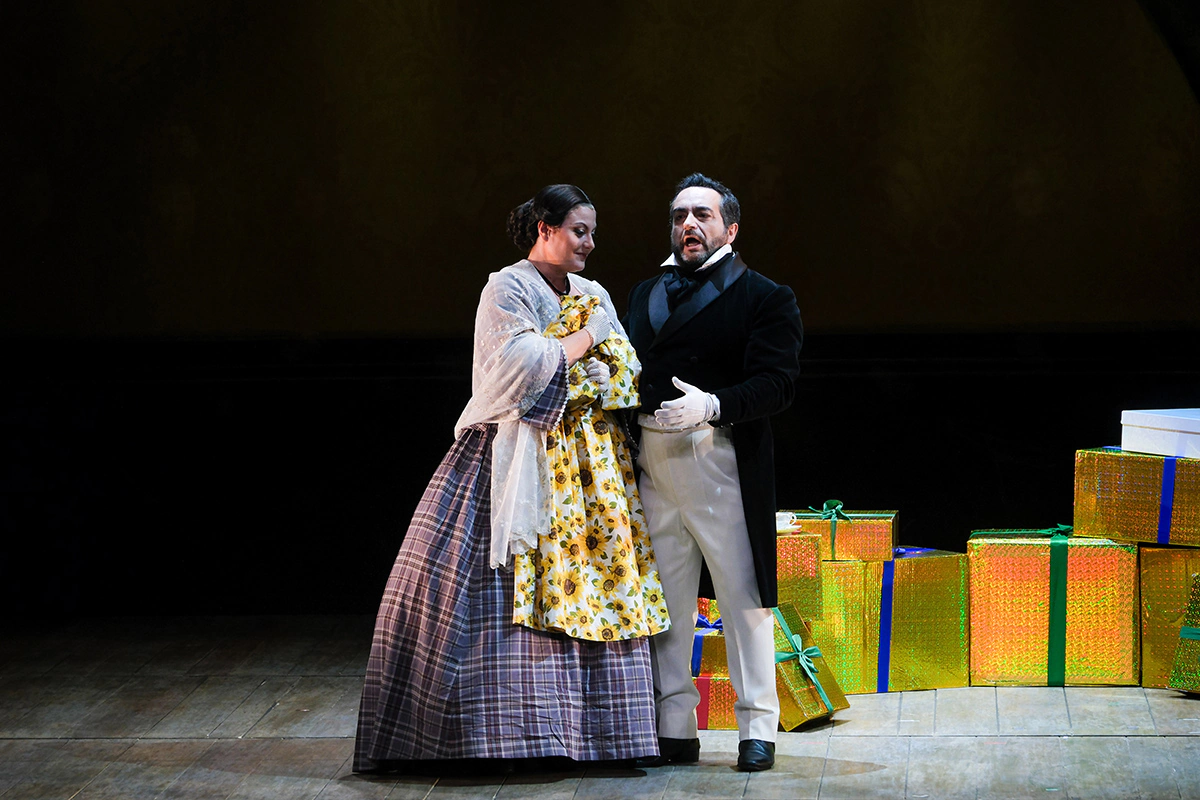 Luisa Miller impose une partition pleine de difficultés et nos protagonistes s’en sortent plus qu’avec les honneurs. Mademoiselle Torbidoni se rie des écueils et domine presque avec insolence les pièges qui lui sont tendus. Ses aigus, magnifiques, ses mezzo voce pleins de douceur, tout en elle semble s’exprimer avec facilité, elle atteint au sublime. Gianlucca Terranova, se dépense sans compter et approche parfois dangereusement sa zone d’inconfort, pourtant dans le dernier acte, il est comme transfiguré, sa belle voix prend toute sa dimension et lors de l’ultime et fatal trio, sans aucune pitié, il tire les larmes de toute une salle qui rend les armes broyée par l’émotion. Le conte Walter et son âme damnée Wurm prennent corps avec Christian Salta et Alessio Cacciamani. Leurs voix amples et basses tiennent toutes leurs promesses. Leur présence scénique et dramatique insufflent à l’œuvre force puissance et intensité. Avec le personnage de Wurm, éminence grise aux sombres desseins, c’est la silhouette de Iago, dans Othello, ou celle de Albiani dans Simon Boccanegra, qui se profile à l’horizon verdien. Seuls Verdi et Wagner, ont, dans leurs œuvres, su donner chair au mal dans toute sa lugubre splendeur.