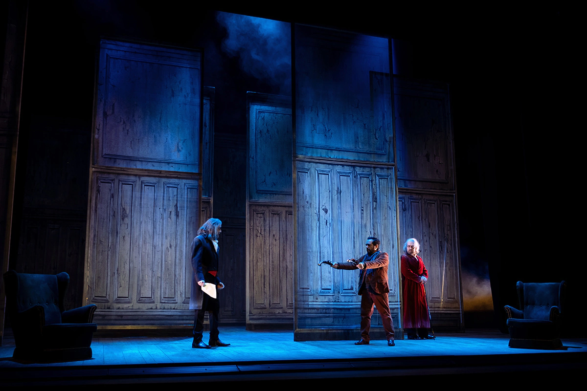 Guy Montavon signe là une mise en scène sobre et agréable, les lumières subtiles comme les grands panneaux légers figurant les lambris d’une demeure bourgeoise, confèrent une atmosphère qui vient tempérer la pesanteur du propos. L’angle particulièrement incliné de la scène vers le public rapproche celui-ci de l’intrigue et contribue à créer une intimité pas toujours confortable, et c’est très bien ainsi.