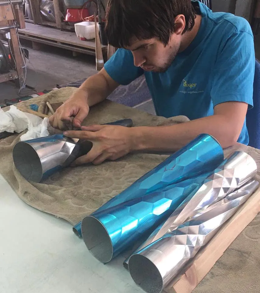 Pauline Freyburger et Gwennin L’haridon fournissent depuis, un travail de qualité avec le soin des matériaux : pour exemple, les cuirs sont sélectionnés selon les méthodes de tannage, pour qu’ils soient compatibles avec les éléments en laiton. L’entreprise a embauché des collaborateurs, car elle ne manque pas de travail : facteur d’orgues, tuyautier, harmoniste et menuisier. Le personnel est méticuleux et passionné. Il possède une envie d’apprendre, autant que l’amour de la musique, de l’art, et du travail parfait.