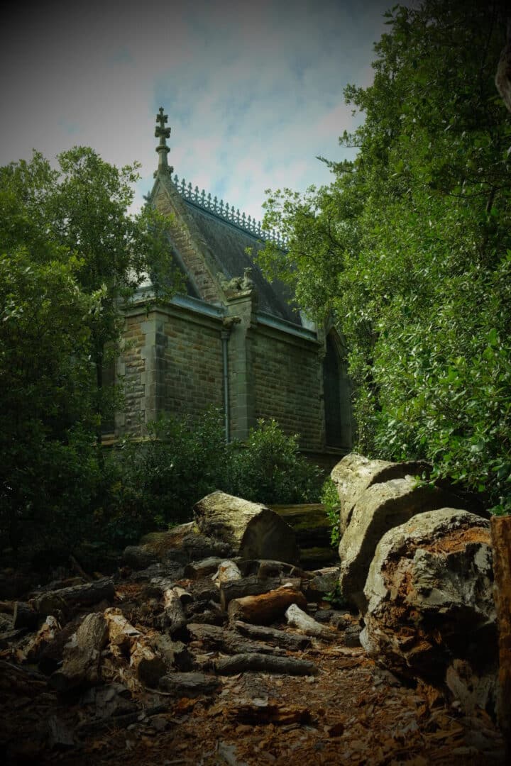 Sur l’île, la forêt cache en son sein la chapelle édifiée en 1885 pour le mariage de son fils en 1885 et dans laquelle le comte fut enterré avec sa femme. Le long de sentier côtier gisent des bateaux de pêche en décomposition et, au loin, les ruines de la tour construite en 1900. Cette dernière s’est écroulée en 2021 en raison de sa vétusté.
