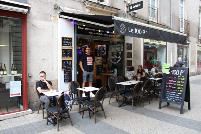 À deux pas de la place Royale, dans la rue de l’Échelle, tous les amoureux de la bière et autres zythologues confirmés (la zythologie désigne la science de la bière) semblent avoir trouvé leur nouveau repère : un spécialiste connu sous le nom Le 100 P’. Auparavant bar incontournable des étudiants nantais, son credo a quelque peu changé, car désormais on y privilégie la qualité à la quantité. Repris en 2020 par Guy Rapaille et Sylvain Averty, le bar a subi un lifting total. Adieu au mobilier tout en formica des années 1960 et place au nouveau comptoir moderne et son ciel de bar lumineux. Un décor léché qui, pour pousser le vice jusqu’au bout, est même éclairé de lampes designées en fleur de houblon !