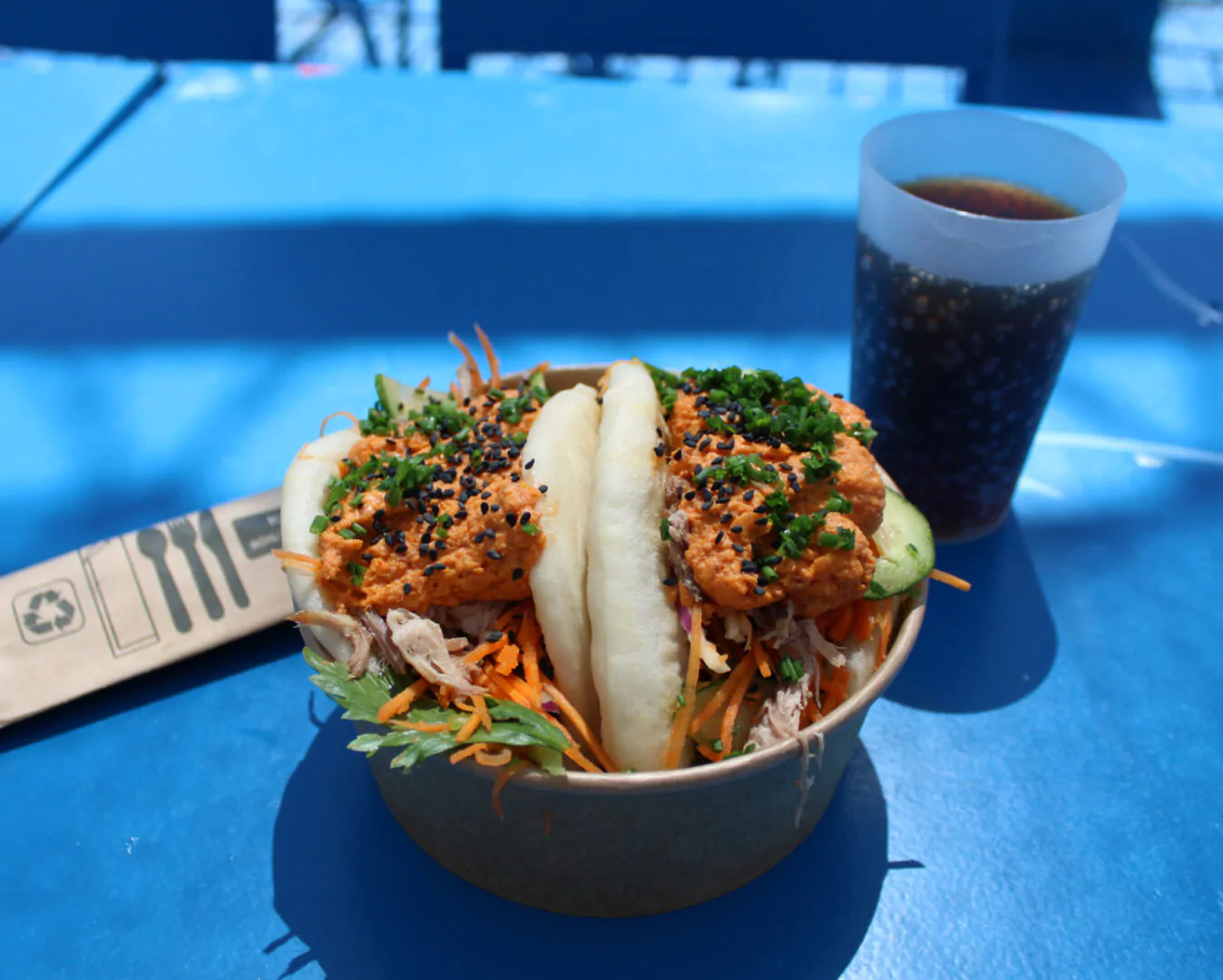 Cap vers le sud pour entamer de nouvelles découvertes nantaises ! Profitant des îles sauvages en bord de fleuve, les habitants de Saint-Sébastien-sur-Loire connaissent bien la Station Nuage. Suivez alors le boulevard des Pas-Enchantés, et vous trouverez, sur l’île Forget, une ancienne étable repeinte en bleu dur sur laquelle s’est posé un nuage d’acier albe. Une métamorphose fantasque opérée il y a deux ans, à l’occasion du festival du Voyage à Nantes, par l’atelier d’architectes foldingues Yokyok. On y trouve désormais un petit restaurant saisonnier, ouvert du 7 mai au 25 septembre, proposant des bánh bao, un pain farci à la viande, aux légumes et aux épices. Une recette vietnamienne rafraîchissante pour environ douze euros.