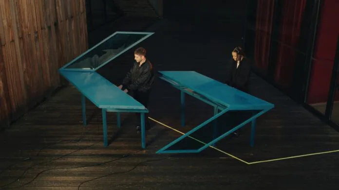Les artistes se positionnent aussi parfois en contradiction avec l’esprit du lieu. Pour la seconde session de Re-Set, Modern Men et Brook Line choisissent de se produire dans la salle des tableaux monumentaux au musée des beaux arts de Rouen. Le style punk de leur morceau et la scénographie contrastent avec ce lieu classique et institutionnel. Les lumières sont projetées sur les œuvres d’art et colorent la blancheur des statues, soudain animées d’un nouveau souffle de vie.