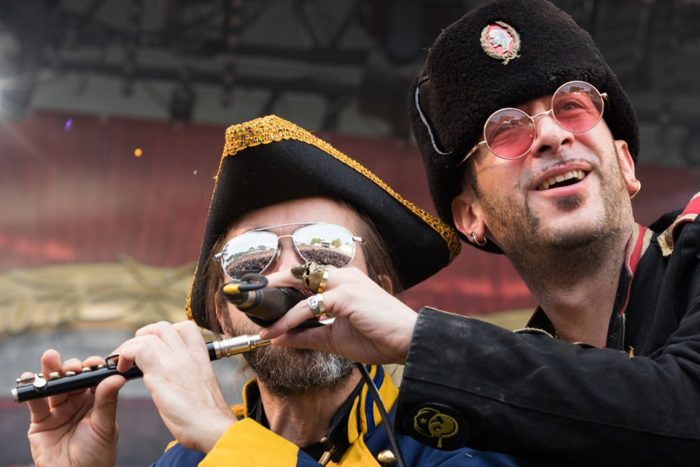 Dimanche à 19h, sur la scène Stan Hugil, les Soviet Suprem ont installé une ambiance véritablement explosive auprès des spectateurs, dont nombre d’entre eux faisaient déjà parti des convertis. Ce duo déjanté, mais non moins talentueux, est formé de R.Wan du groupe Java et de Toma Feterman de La Caravane Passe. Mais sous leurs costumes de généraux soviétiques, ces derniers répondent ici aux doux noms respectifs de Sylvester Staline et John Lénine. Leur mission pour cette soirée: imposer la « dictature du dancefloor » pour diffuser « L’internationale », leur propre style de musique qui, dans un autre monde, aurait envahi la planète si l’URSS avait gagné la Guerre Froide.
