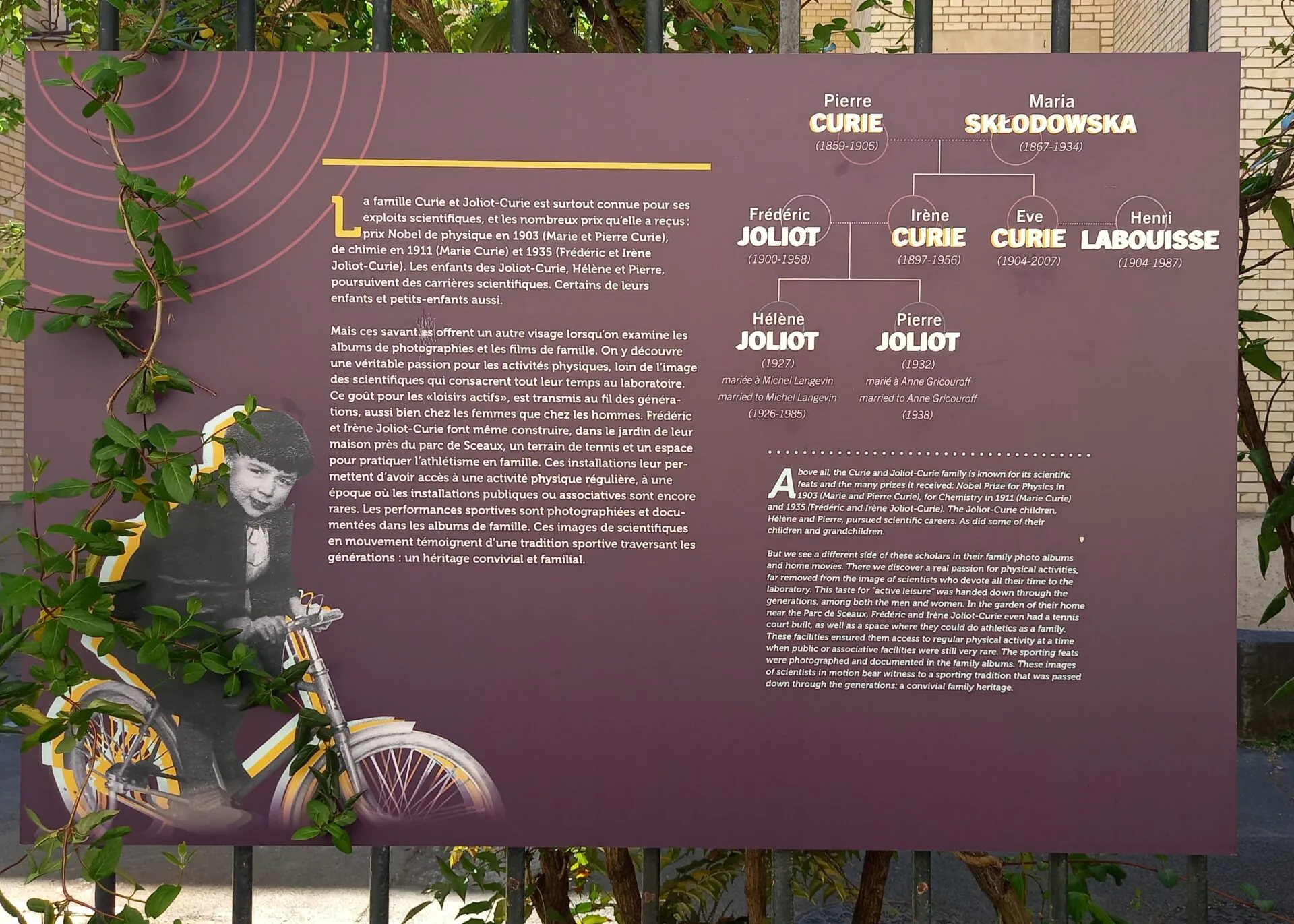 Dans le cadre des Jeux Olympiques de Paris 2024, le Musée Curie, dans le 5e arrondissement de Paris, a dévoilé une facette méconnue de la famille Joliot-Curie à travers l’exposition Avec les Joliot-Curie c’était physique. Installée à l’extérieur sur les grilles du Musée Curie, elle es prolongée jusqu’au samedi 17 mai 2025.