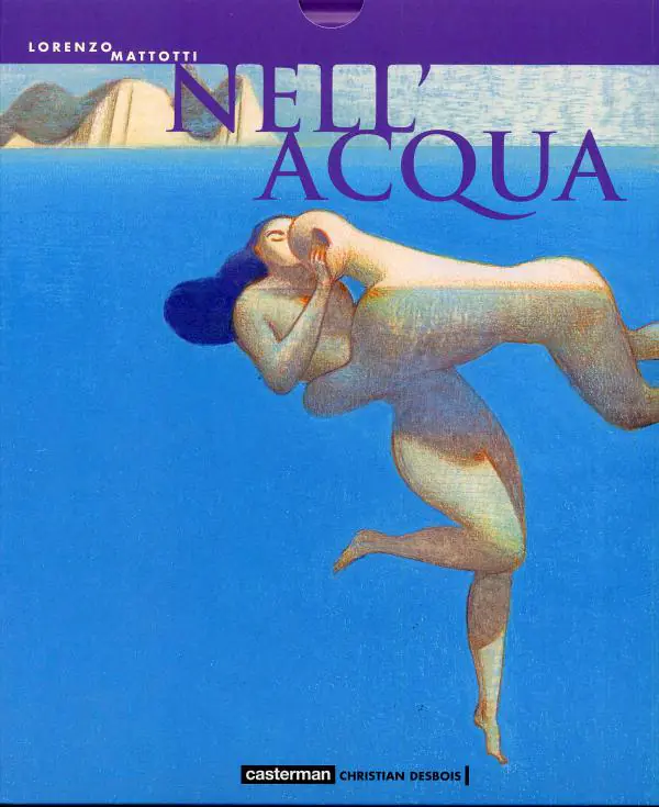 Commençons cette revue avec un OVNI, une réédition pour ce livre inclassable: la parution de Nell’Acqua (1) de Lorenzo Mattotti. Recueil d’illustrations pour la plupart inédites, les images sensuelles mettent en scène les ébats amoureux d’un couple dans l’eau et font écho au film co-signé par Wong Kar Wai, Michelangelo Antonioni et Steven Soderbergh, Eros (2004), film auquel Mattotti avait participé. Une œuvre poétique exceptionnelle où l’eau entoure les corps pour les magnifier. Un Art Book à conserver religieusement.