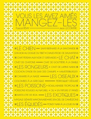 Ce nouvel ouvrage des éditions de l’Épure (spécialisée dans l’architecture et la gastronomie – ça va bien ensemble !) vous fera hurler de rire ou crier à l’infamie. En préambule, l’auteur assure qu’« aucun animal n’a été maltraité pendant l’écriture de ce livre » puis dans la préface, il assure que si votre animal pouvait parler, il vous dirait : « Tu m’as nourri et choyé pendant toutes ces années. Je suis vieux et les temps sont durs, alors je peux te rendre un peu du bonheur que tu m’as donné (…), je te dis tout simplement : mange-moi ». Rien à voir avec la chanson du psylo… sauf le côté provocateur !