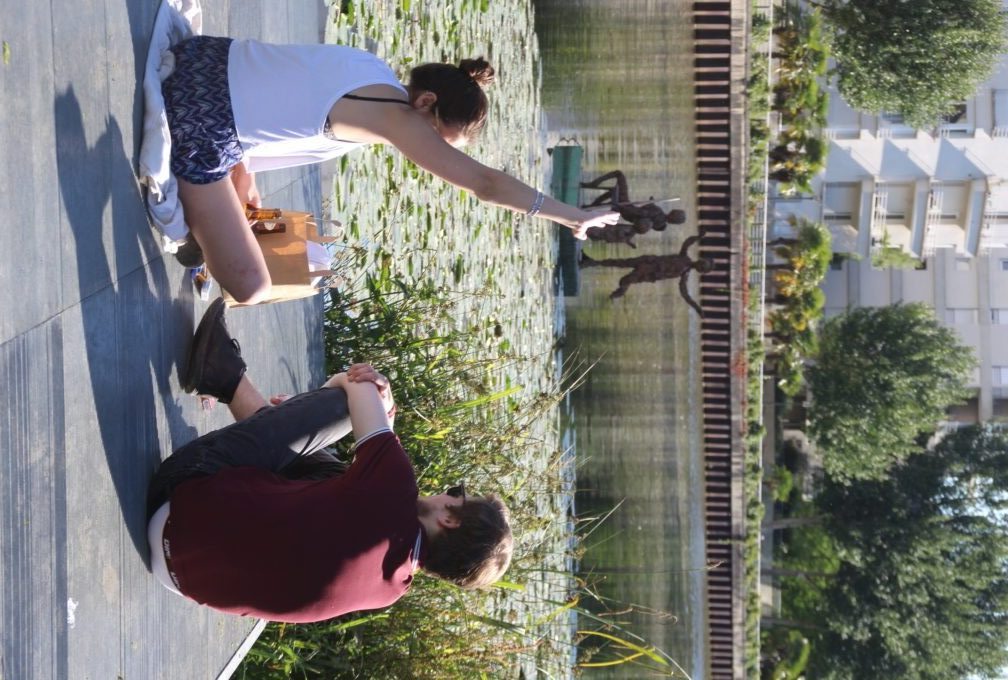 En partant du Jardin de la Confluence, au bout du Mail François Mitterrand à Rennes, les passants commencent à croiser ces… Pheuillus. Certains sont assis et observent ; d’autres jouent ; d’autres encore essaient d’imiter les humains. Il est très rare de voir des Pheuillus se mouvoir en plein jour. Malgré tout, nous avons réussi à saisir le rare moment où un Pheuillu lève le bras pour imiter, répondre ou se moquer gentiment d’une jeune femme assise sur le quai (voir photo). À l’instar des Korrigans, les Pheuillus sont très facétieux !
