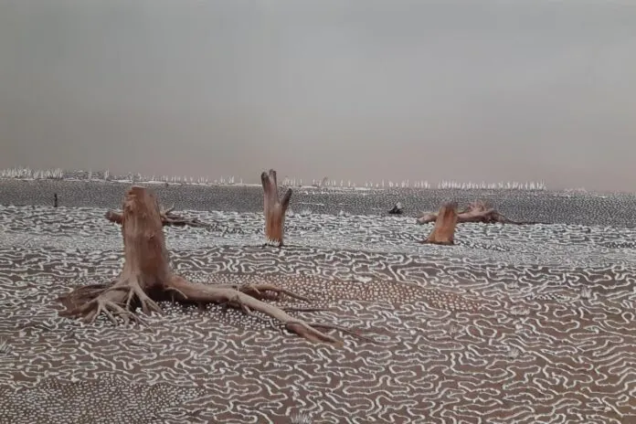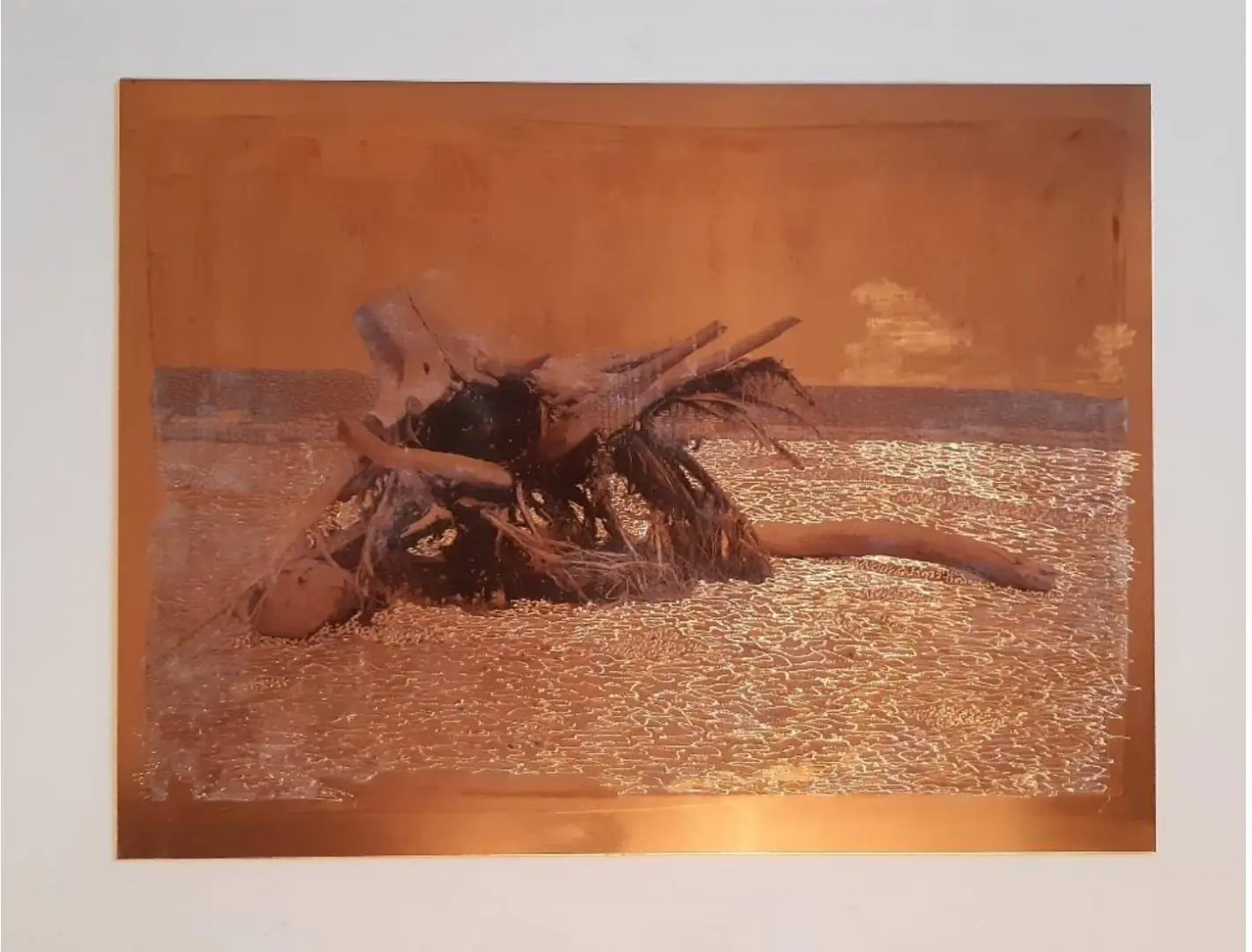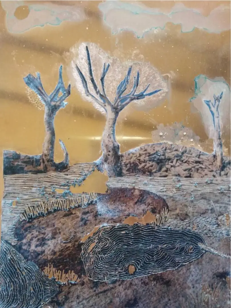 Raphaëlle Peria, Lago Epecuén, grattage sur photographie, 40 x 30 cm, 2020.
