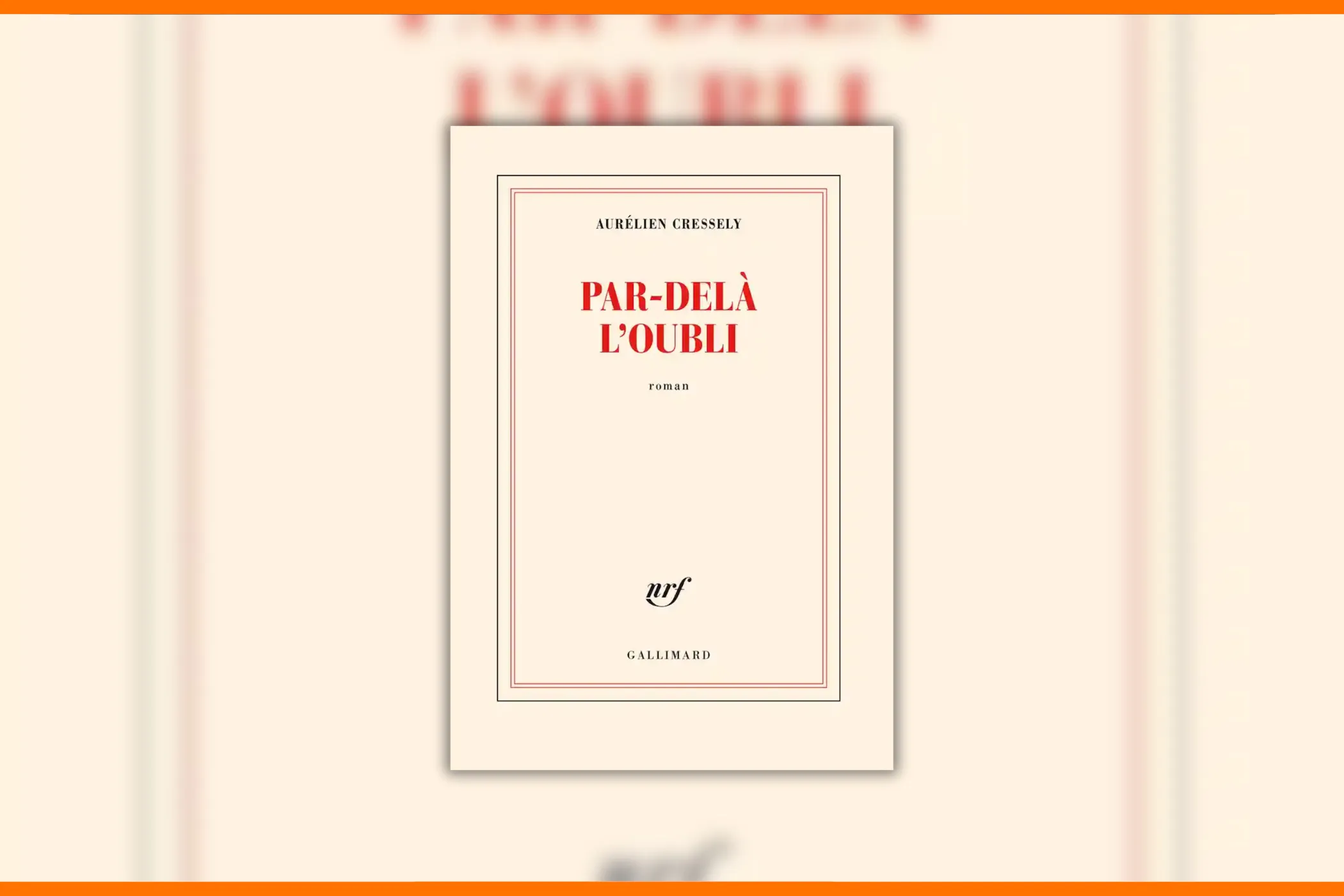 *Aurélien Cressely, « Par-delà l’oubli », Gallimard, coll. Blanche, 2023, 159 p., ISBN 978-2-07-302698-9. Il faut souhaiter que Gallimard publie ce roman sous peu en collection de poche Folio pour élargir plus encore son lectorat.