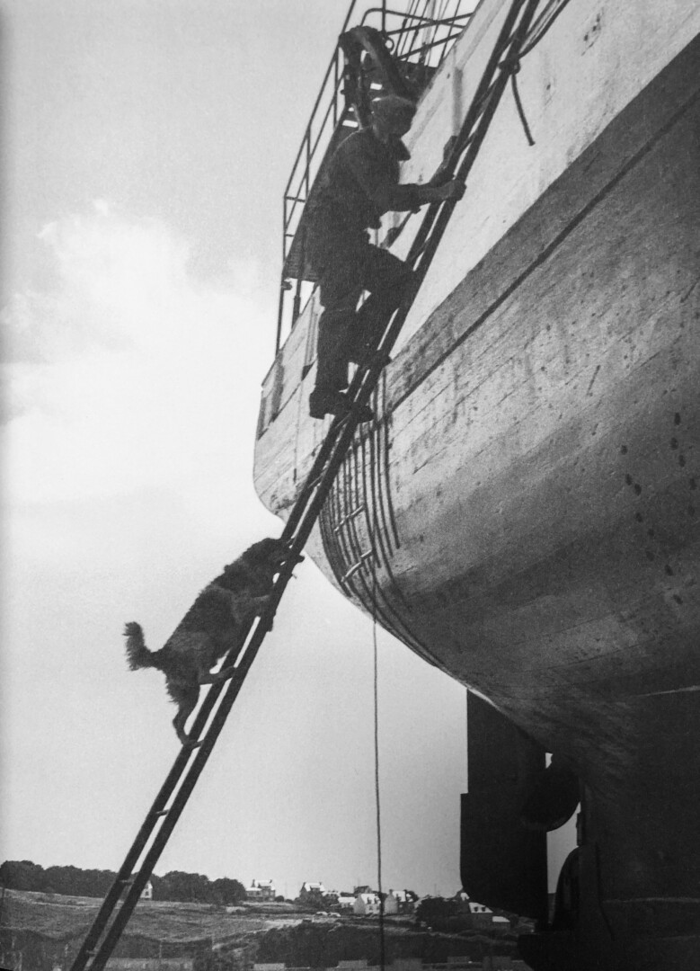 Dans ce chapitre consacré à l’instantanéité sont évoquées les photographies prises au bon moment quand la fortune souriait au photographe. Parmi ces clichés qui font sourire une photographie intitulée Fidèle malgré tout, prise à Camaret-sur-Mer dans le Finistère et annotée au verso de ces mots de René Maltête : « En vacances dans le Finistère, j’ai souvent assisté à cette petite scène amusante. À la prise du travail, dès 8 heures du matin, le chien Jos monte à l’échelle derrière son maître, ouvrier sur un bateau en construction des chantiers navals de Camaret. »