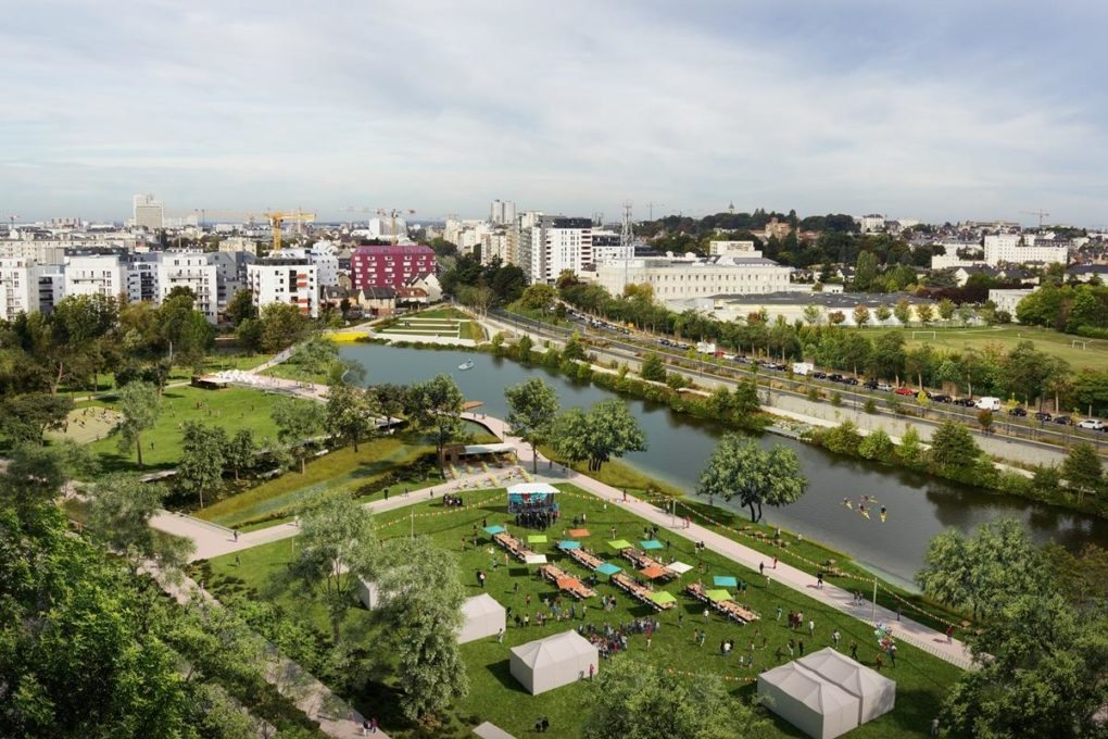 Projet : À l’horizon 2025, le quartier Baud-Chardonnet proposera un cadre de vie à la fois apaisé et animé, à proximité du centre-ville de Rennes. L’identité et l’ambiance du quartier, dont la programmation se dessine petit à petit, s’articulent autour du parc de 3 hectares qui sera aménagé en bord de Vilaine et qui reflètera l’exigence avec laquelle sont conçus les espaces publics rennais. Conçu par Jacqueline Osty, paysagiste associée à Reichen & Robert, urbanistes de la Zac Baud-Chardonnet, ce parc bordera le quartier en 2020. Activités sportives, festives et ludiques (jeux d’eau, terrains multisports, plages, pontons, guinguettes…), nouvelle liaison piétonne et deux-roues avec la rive droite de la Vilaine… le parc proposera un vaste espace de convivialité présentant la particularité de répondre en même temps à la nécessité de composer avec l’aléa des crues. Par sa surface, son emplacement et sa proximité inédite avec le fleuve, l’intérêt de ce poumon vert de Baud-Chardonnet dépassera largement le périmètre du quartier pour s’ouvrir à tous les Rennais et former un espace public attractif au bord de l’eau, contribuant à l’extension du centre-ville vers l’est.