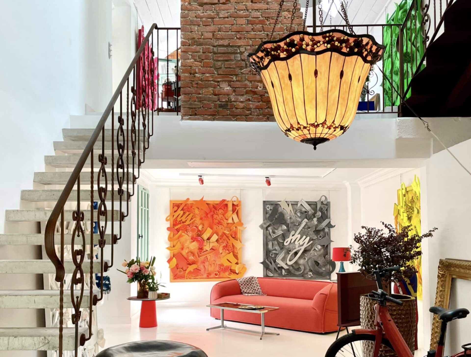 Ancien Fournil de 1943 encore en activité il y a peu, l’artiste sous le charme, en fait l’acquisition en 2021. C’est une évidence, il souhaite rapidement en faire son lieu d’expression et lui donner une nouvelle âme faisant écho à son travail plastique. Un lieu riche en matériaux nobles… la ferronnerie, la porcelaine, le staff. Il souhaite conserver l’authenticité du bâtiment, comme la cheminée en brique rouge de l’ancien four à pain, qui traverse la bâtisse tel un immense poumon central. Lieu vivant et original, il permet à l’artiste, d’accueillir sur rendez vous, clients et divers projets…