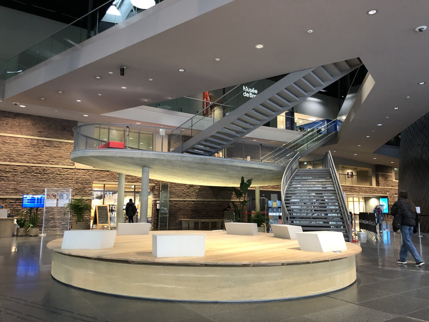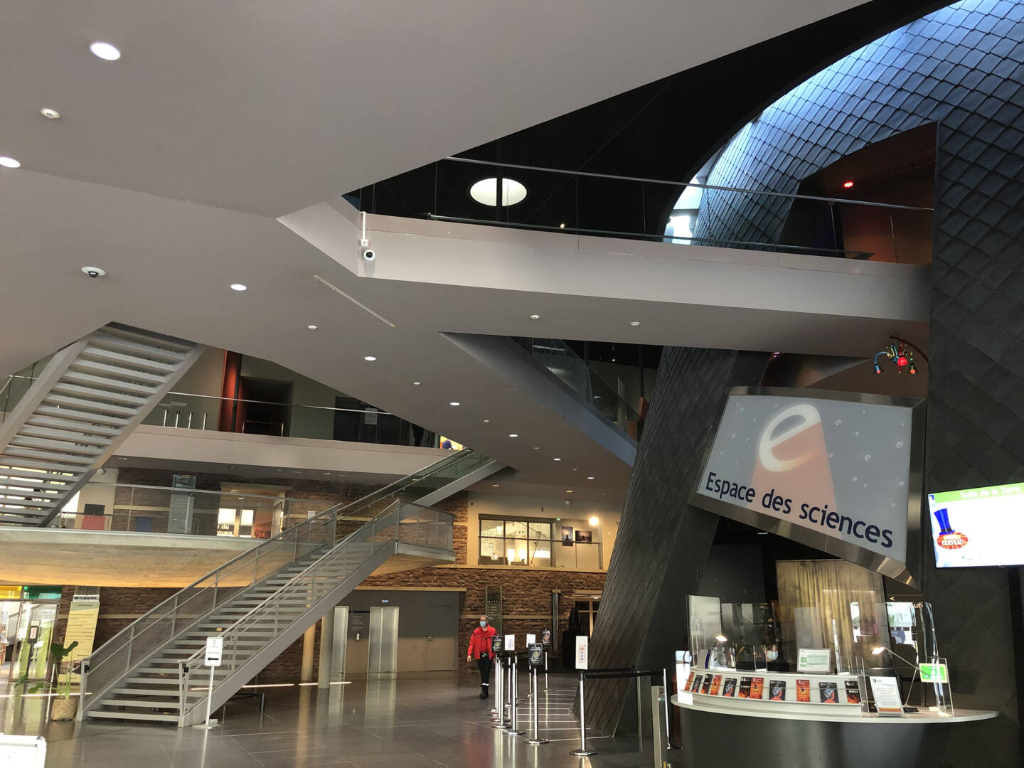 Trois structures cohabitent au sein des Champs Libres, à savoir le Musée de Bretagne, la Bibliothèque et l’Espace des Sciences. La grande contrainte que présente le hall d’accueil réside donc dans la pluralité des espaces qu’il doit desservir. Prévus cet automne, les travaux de transformation auront pour but la restructuration d’un espace davantage adapté aux flux permanents, tout en divulguant les informations pratiques de la manière la plus pertinente possible.