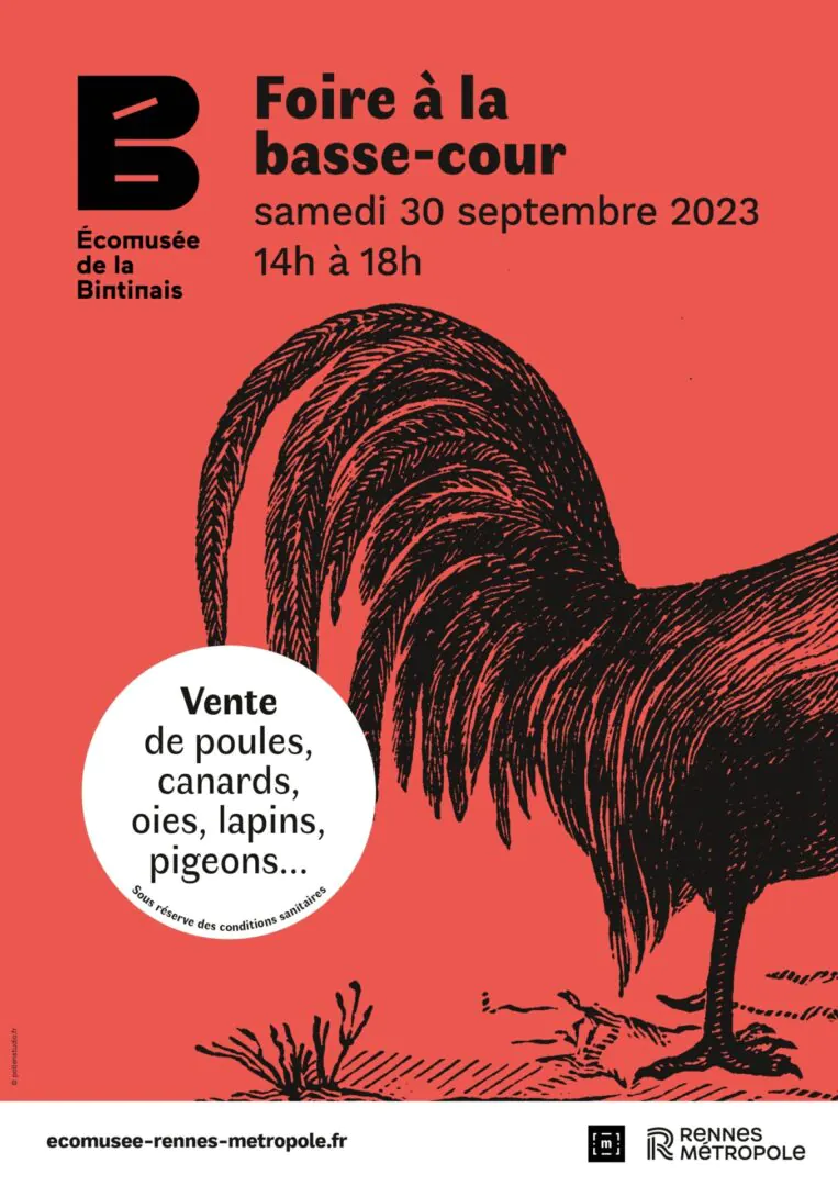Vente des animaux de basse-cour de la Bintinais : poules, oies, canards, pigeons, lapins… L’Écomusée de la Bintinais organise le samedi 27 septembre 2025 de 14h à 18h00 sa foire à la basse-cour.